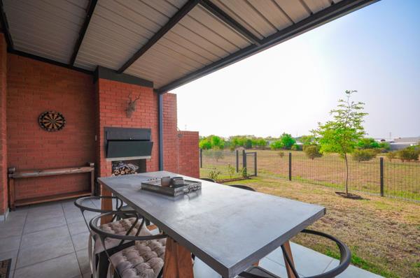 Spacious lounge and dining area seamlessly flowing onto a covered patio with a built-in braaiperfect for entertaining.