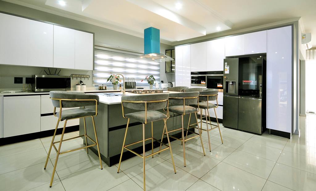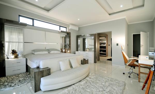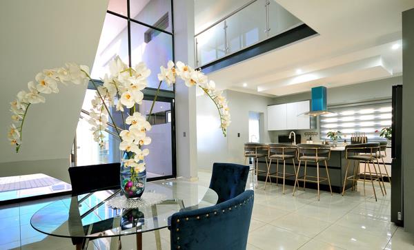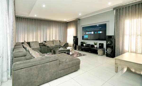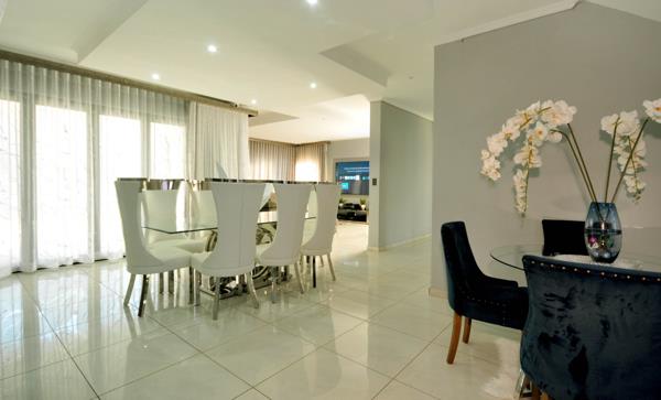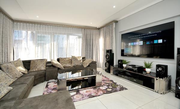 Stylish and modern entertainer''s dream. The lower level offers a double volume entrance hall with glass panels from top to bottom, a full guest bathroom, a well designed dream kitchen with 5-plate gas hob, eye-level oven, built-in convection oven, breakfast nook & separate scullery / laundry area, a separate bar area, a spacious open plan dining room, an enormous family lounge with gas fireplace, a study / office with separate entrance (could be utilized as a fifth bedroom). The fourth bedroom is located on the lower level, it has a separate dressing area, is served by a full en-suite bathroom, and opens up to the patio with sliding doors. The upper level offers a pajama lounge with loads of natural light & stacking doors leaning out to a balcony, a guest toilet, a gym / entertainment room with private balcony, and three air-conditioned double bedrooms served by three en-suite bathrooms. The master bedroom is an absolute treat. It has a spacious dressing room, is served by a full en-suite bathroom with sliding doors & a private balcony, and opens up with two sets of stacking doors to a large balcony overlooking the garden and pool area. The reception areas downstairs open up to a covered patio (with built built-in braai) with three sets op stacking doors and lead out to a private garden with pool and boma. Domestic accommodation. Three automated garages. Solar geysers. Solar system with Inverter batteries. Smart automation.