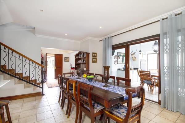 Year-round entertaining is a breeze with the enclosed patio featuring a built-in braai and additional storage space, leading to the thoughtfully designed outdoor amenities. Enjoy the stylish composite deck, boma area, sparkling pool, and a relaxing jacuzzi, equipped with an inverter heat pump. The irrigated garden, fed by a submersible water pump, ensures lush greenery and easy maintenance.