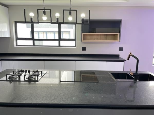 The seamless flow from the kitchen to the dining and lounge areas creates an inviting atmosphere, ideal for both relaxation and social gatherings.