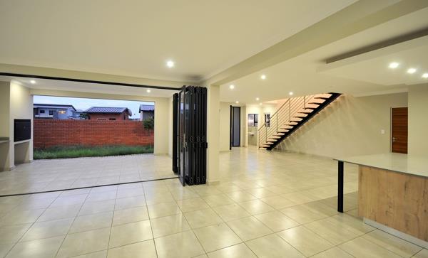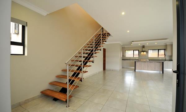 Modern home that has barely been lived in with high quality finishes, built in a cluster of only four units.. The lower level offers a lovely reception area, a guest toilet, an open plan dining room, an open plan lounge, a well equipped kitchen with gas stove & island breakfast nook & pantry cupboard & separate scullery / laundry area. Both the dining room and the lounge open up with stacking doors and flow out onto the enclosed patio with a built-in braai. The upper level offers a 4-door linen