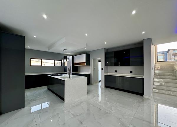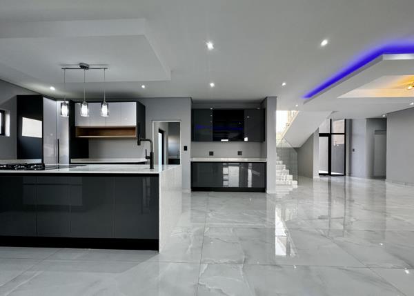 This move-in ready home in Six Fountains Residential Estate is designed to maximise space, natural light, and seamless indoor-outdoor living. With a striking double-volume glass facade, the property offers an immediate sense of openness, further enhanced by expansive stacking doors that connect the interior to generous outdoor spaces.