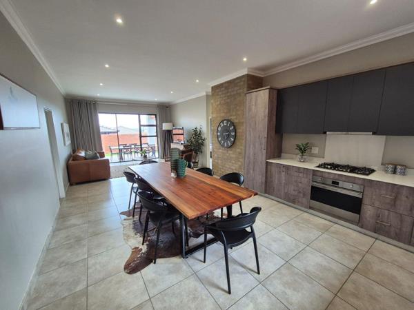 This home offers 3 spacious bedrooms with built-in cupboards and 2 full bathrooms (main en-suite). The open-plan kitchen features a gas hob and scullery, seamlessly flowing into the dining room and lounge, which open onto a covered patio with a built-in braai, overlooking a private garden - perfect for entertaining and relaxing.