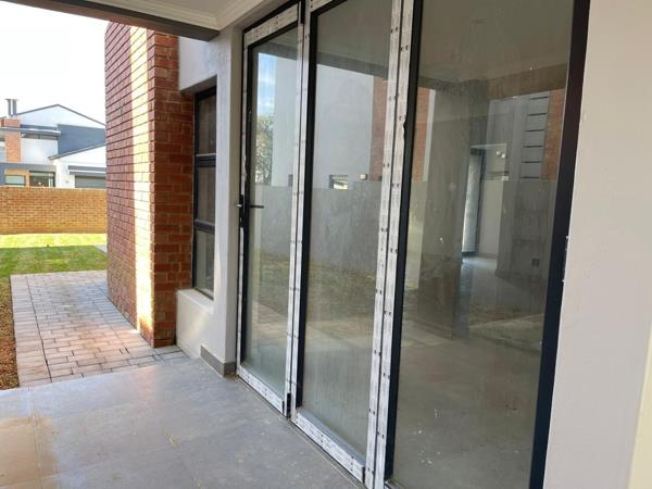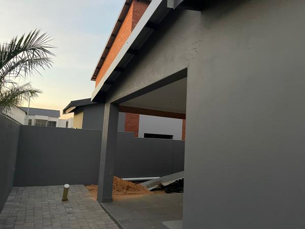 Brand new 3 bedroom, 3 Bathroom house in the lovely Six Fountains Estate, Silver Lakes. The house also offers an open plan living area/dining room and kitchen, scullery, pantry, guest toilet, study and a beautiful patio are with a built in braai and ample grass space for the kids to play, as well as a double garage. The house also features a gas stove, 5kw back up power. Absolute tranquil, safe living. Close to shops, schools, medical facilities and all major routes.