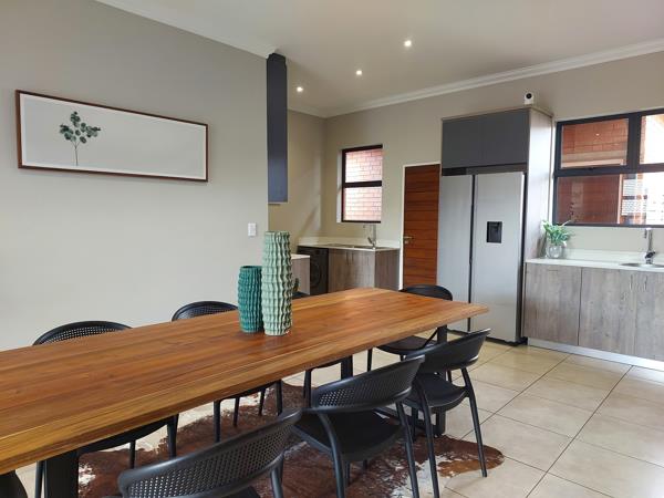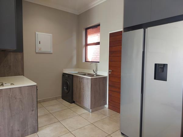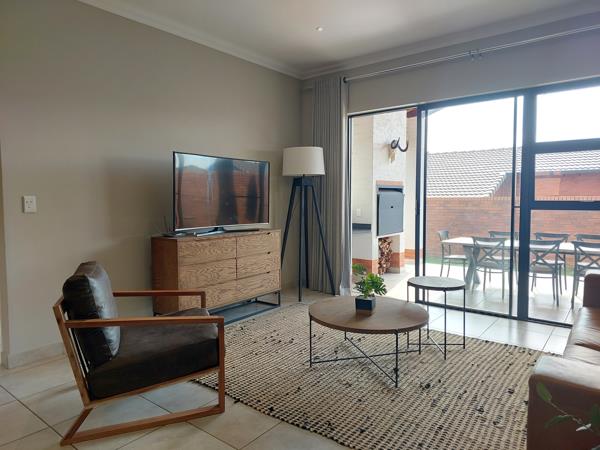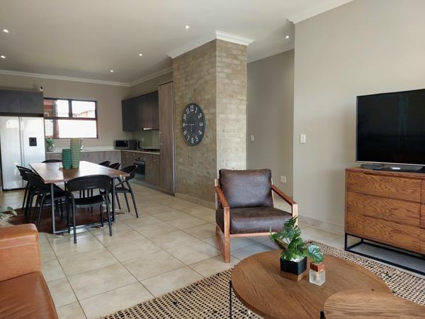 This exquisite 3 bedroom, 2 bathroom townhouse offers a harmonious blend of modern design and practical living with an open-plan layout that perfectly connects the kitchen and living/dining area. On the outside you will find a large patio with a built-in braai, counter top and neat garden.