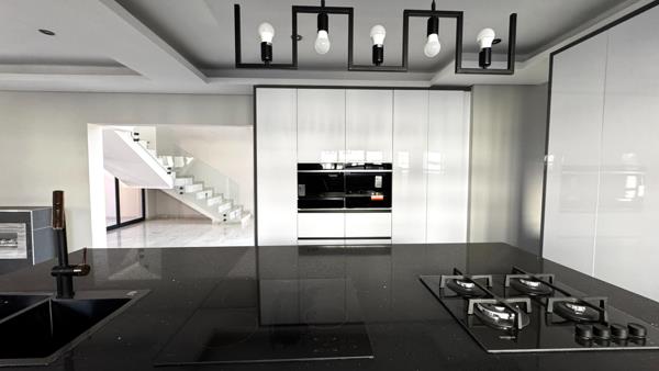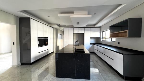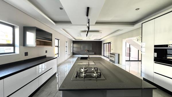 The homes expansive open-plan living and dining areas are beautifully designed for both everyday family life and elegant entertaining. A state-of-the-art chefs kitchen sits at the heart of the home, fitted with sleek cabinetry, a centre island, and a separate scullery and pantry that streamline functionality while maintaining style.