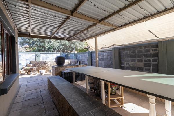 The enclosed entertainment patio is the ultimate year-round gathering space, complete with a built-in braai and additional workspace. From here, stack doors open onto a stylish private outdoor haven. Imagine relaxing in the sparkling pool on warm summer days, gathering around the boma with friends on cool evenings, or simply enjoying the beauty of the untimed, low-maintenance garden.