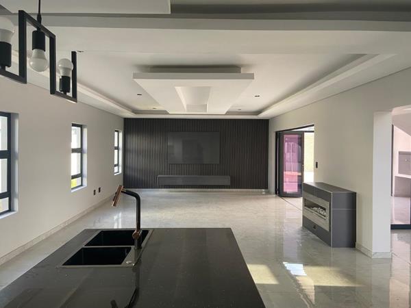The dining room area boasts a sophisticated gas fireplace,adding warmth and ambiance to your dining experience. Outdoor living ,features the enclosed braai room and aluminium folding doors that open up to a sparkling swimming pool,acozy boma and lush green garden