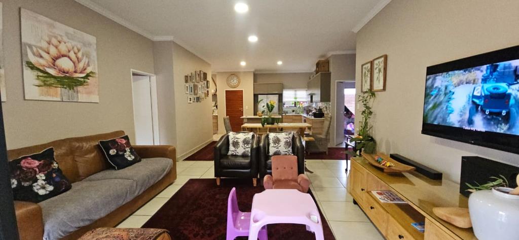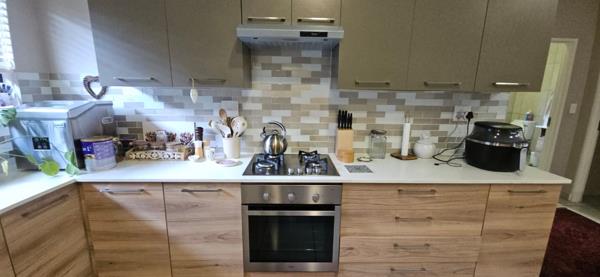 Step inside to discover a light-filled, open-plan layout where the spacious living and dining areas flow effortlessly into a sleek, modern kitchen. The kitchen boasts ample cupboard space, a gas hob, an electric under-counter oven, and a practical breakfast nookideal for family mornings. A separate scullery accommodates two appliances, ensuring a clutter-free space.