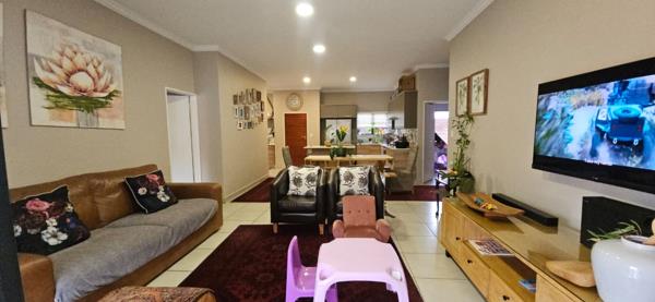 Enjoy effortless indoor-outdoor living on the covered patio with a built-in braai, overlooking a neat, low-maintenance garden with an irrigation system. An outside bathroom with toilet and basin adds extra convenience.