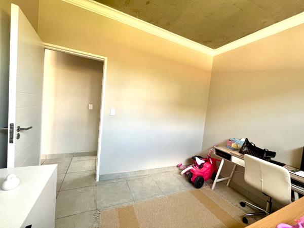 Spacious, open-plan living area with a dining room, lounge, and a large, covered patio, with a built-in braai, which overlooks a small, manageable garden. The complex also offers 2 play parks, with the one, shared by only 3 houses, is adjacent to this unit.