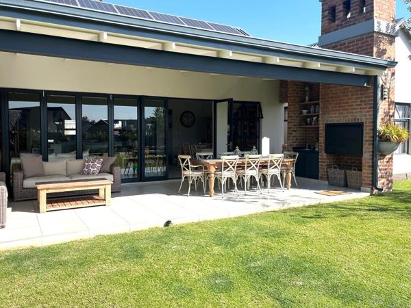 The main focus area of the house is a beautiful, stylish open plan kitchen which has a large island, gas stove, scullery and pantry. The kitchen links up beautifully with a spacious dining and living area which naturally flows into a large, covered entertainment area and braai. A boma further complement and enhance the indoor-outdoor lifestyle features of the home.
