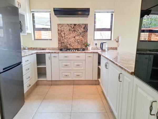 Outside, a double carport and double garage with a good size driveway can be found. There is a sprinkler system in the garden and the flat and house each has it''s own prepaid electricity meters. There is also a complete solar system installed with x 12 solar panels, a 4kw battery and a 5kw inverter as well as a solar geyser. A diesel generator is also included in the sale. There is also an alarm system installed.