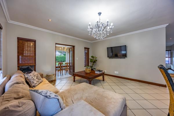 Discover this inviting 3-bedroom, 2-bathroom residence nestled within the secure Willow Acres estate in Pretoria. The home boasts an expansive open-plan layout, seamlessly integrating the entrance hall, lounge, dining room, and family TV room. This design fosters a sense of connectivity, ideal for both daily living and entertaining. The modern kitchen is a focal point, featuring sleek dark cabinetry, granite countertops, an island with a breakfast bar, and a convenient pantry. Elegant chandeliers and recessed lighting illuminate the main living areas, complemented by durable tiled flooring and sophisticated crown molding throughout. A cozy fireplace and air conditioning ensure year-round comfort.