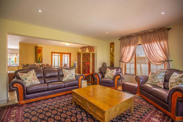 Open plan design with spacious lounge, dining area, kitchen with island granite tops and scullery, accommodating double fridge, and major appliances.
