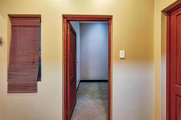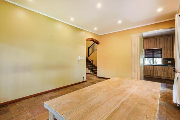 The dining and living rooms both open effortlessly onto a covered patio with a built-in braai the ideal spot for entertaining overlooking a well-manicured garden perfect for relaxation and outdoor living.