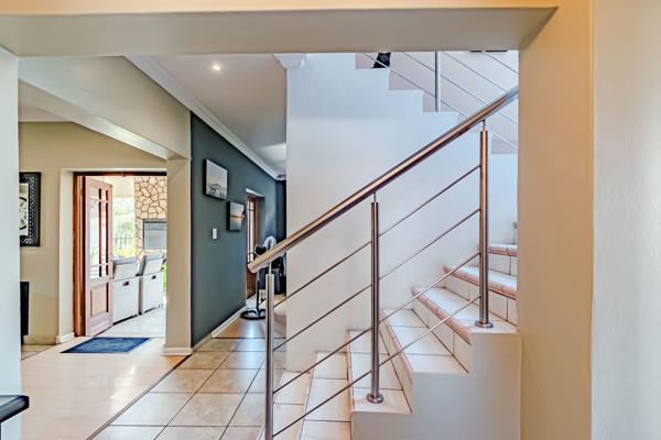 Downstairs the open plan kitchen and dining area. The TV/Lounge area opens up to the undercover braai area and small splash pool. A guest toilet and office area or second lounge complete this family home.