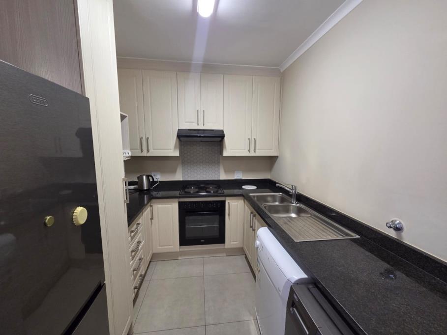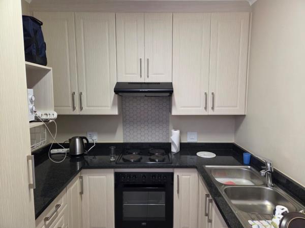 The open plan functional kitchen is equipped with electric oven and ample cupboards and washing machine connection.