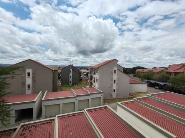 Discover comfortable living in this 69 sqm apartment located within a secure estate in Pretoria. This inviting residence features an open-plan layout, seamlessly connecting the functional kitchen to the spacious lounge. The kitchen boasts ample wooden cabinetry, dark countertops, a built-in oven and hob, and a double sink, all benefiting from natural light. The lounge area is brightened by a large window, offering pleasant green views and creating a warm, welcoming atmosphere.
