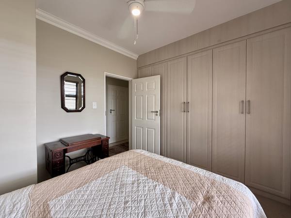 Third bedroom mirrors the homes thoughtful design with built-in cupboards and a ceiling fan of its own.