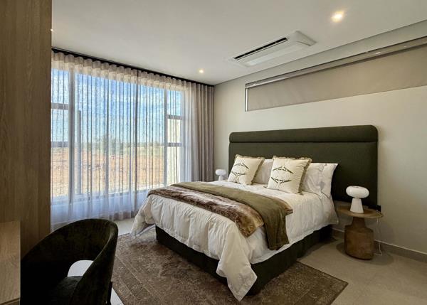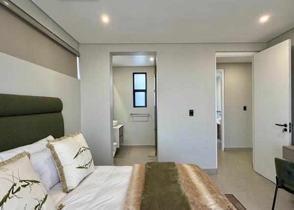 A spacious three-bedroom, three-and-a-half-bathroom home with a double garage, designed for generous and flexible single-level living. The kitchen with centre island and gas hob flows into the open-plan dining and lounge areas, complemented by a separate scullery for the dishwasher and a dedicated laundry off the garage with built-in cupboards, worktops and utility space. A covered patio with built-in braai and prep station enhances everyday entertaining, while the primary suite features a walk-in wardrobe and private covered patio, and a private external bedroom with en-suite together with a separate external bathroom offer valuable additional accommodation. Priced from R 5919 000,00.