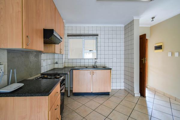 Lovely ground-floor townhouse in a secure estate, featuring an open-plan kitchen and living area that leads to a private