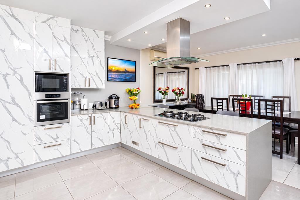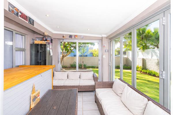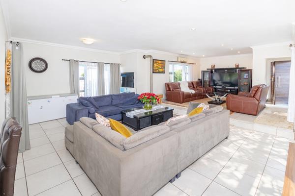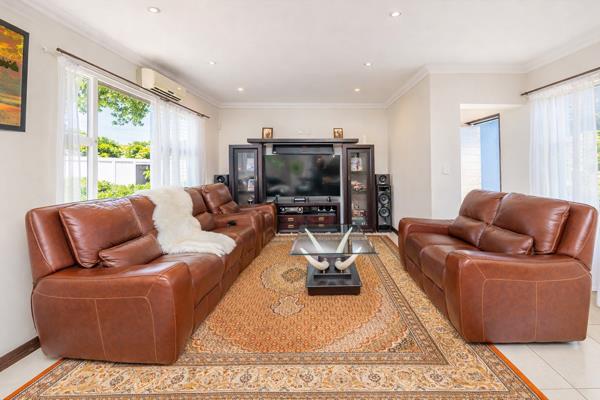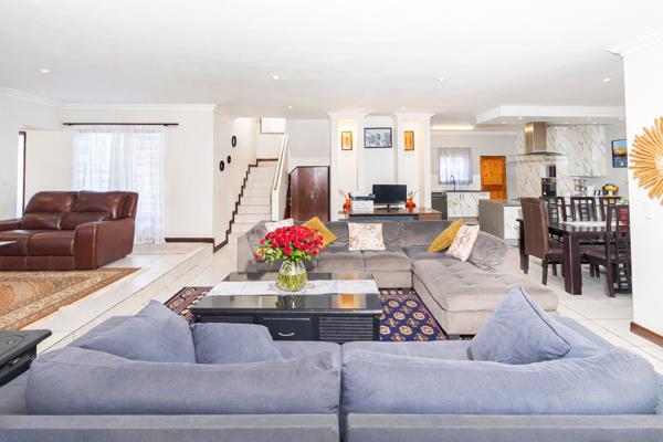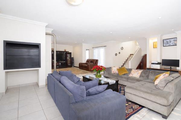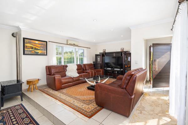 Family Home in a Secure Estate. As you enter this welcoming home, you are greeted by a lovely open-plan living area that creates a warm and inviting atmosphere. The space includes a comfortable TV room and lounge featuring a built-in indoor braai and cozy wood-burning fireplace, perfect for relaxing evenings or entertaining guests. The living areas flow seamlessly into the dining room and a large, well-appointed kitchen, offering ample space for family living.