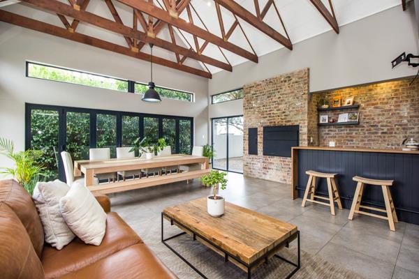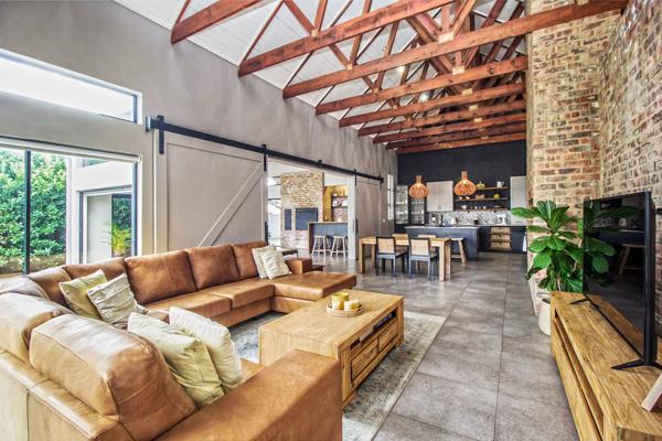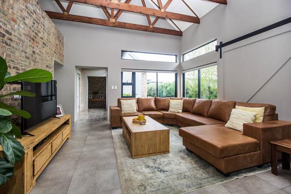 Step inside to a spacious open-plan living area where the lounge, dining room, a large enclosed patio, and the back garden, flow beautifully together through stacking doors, creating the ideal setting for both relaxed family living and sophisticated entertaining. A cozy fireplace, built-in bar with basin, and built-in braai ensure this home is ready for every season and every occasion.