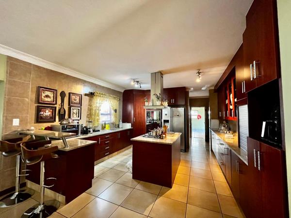 - Kitchen with a breakfast bar, central island, and separate scullery