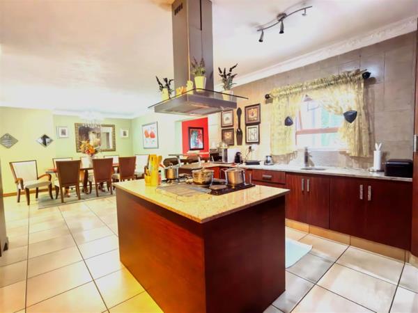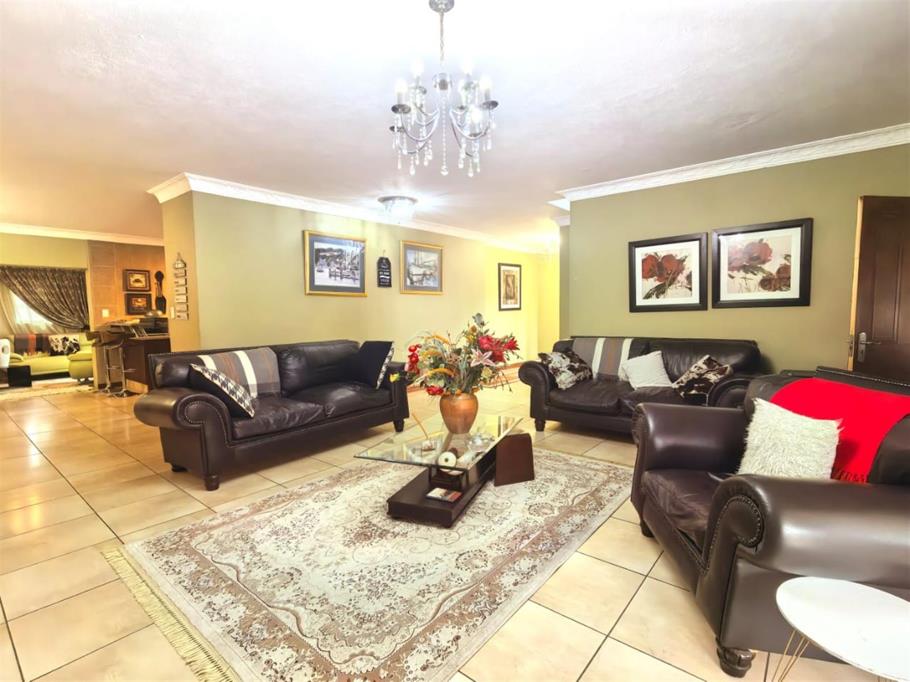 The expansive open-plan living and dining spaces are bathed in natural light, flowing seamlessly into a snug secondary lounge that gazes out over the lush garden ideal for savoring a peaceful morning tea or unwinding with a sunset toast. In warmer months, the sheltered braai patio becomes the vibrant core of the home, alive with shared stories, delicious meals, and the joyful splashes of children in the sparkling pool.