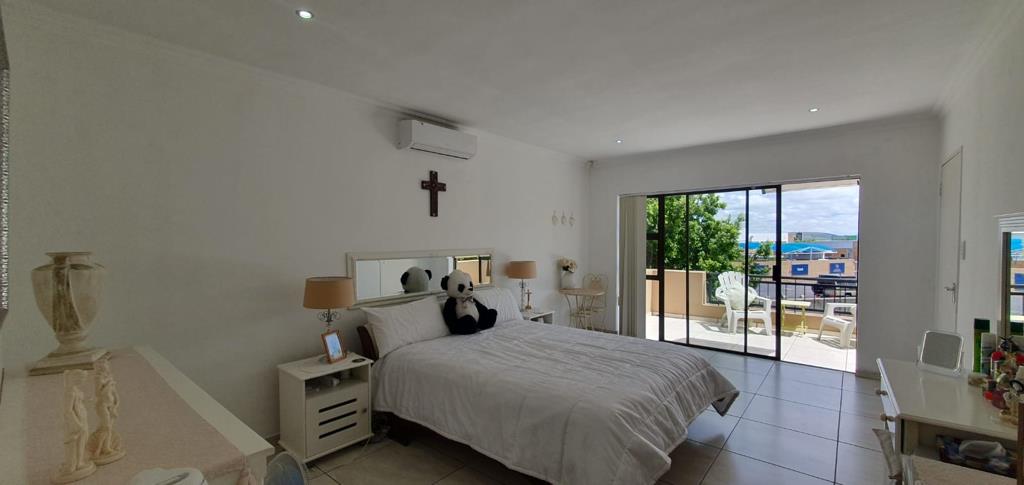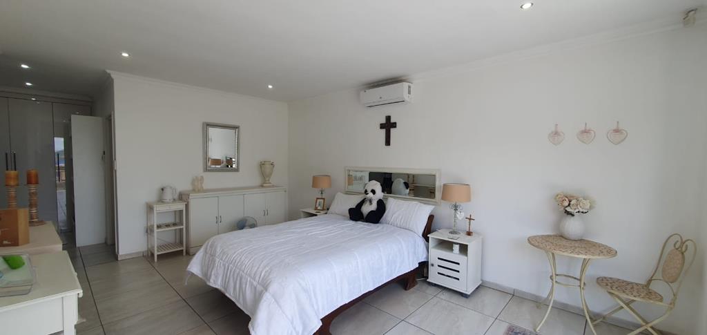 Outdoor amenities include a private patio and a well-maintained garden, providing ample space for relaxation and outdoor activities. The property further benefits from two garages and two additional parking bays, addressing all vehicular requirements. Residents will appreciate the robust security infrastructure of the estate, which includes 24-hour security, CCTV surveillance, an access gate, intercom system, electric fencing, and a security gate, ensuring peace of mind. Fibre connectivity is also available.