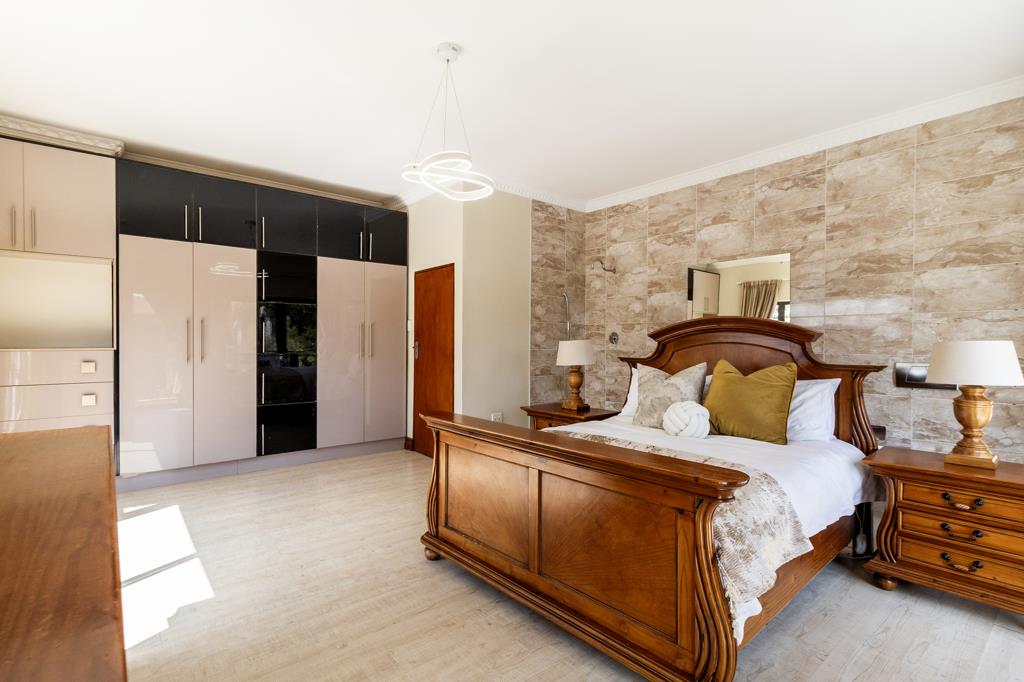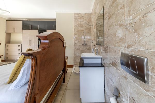 The modern and spacious kitchen is a chefs dream, featuring ample counter space and sleek finishes that blend style with functionality. With room for a double-door fridge and a separate scullery that is fully equipped to accommodate all your appliances, this kitchen is both practical and aesthetically pleasing. The open-plan design allows you to remain engaged with guests or family while preparing meals, making it the heart of the home where countless memories will be made.