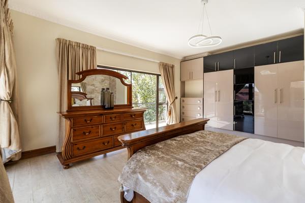 As you step inside, you are welcomed by a breath-taking staircase, a spacious open-plan living and dining area designed for effortless flow and functionality, a private living room and a lovely and spacious lounge. The thoughtful layout ensures a seamless transition between relaxation and entertainment, making it ideal for both quiet family evenings and social gatherings. A conveniently located guest bathroom on the ground floor adds to the homes practical design, ensuring ease and comfort for visitors. The true highlight of this home, however, is the expansive entertainment area, complete with a built-in braai, where you can host friends and family all year round. This inviting space is perfect for weekend get-togethers, special celebrations, or simply unwinding after a long day.