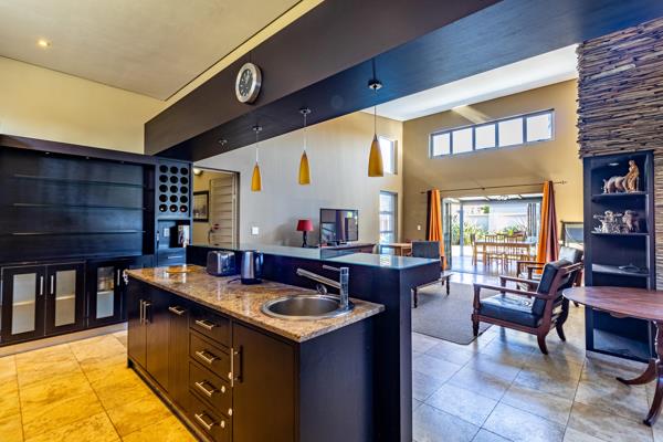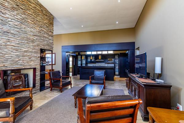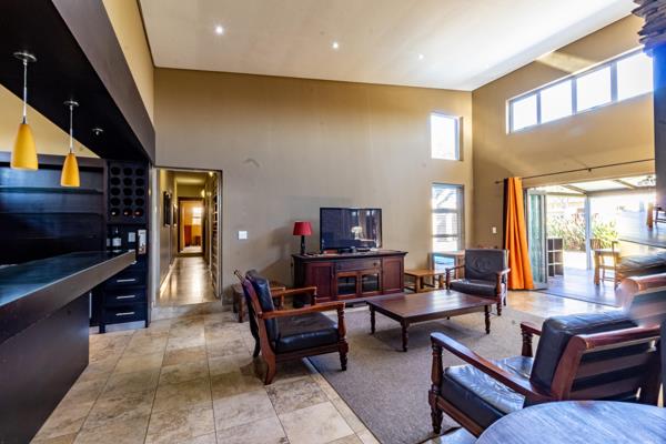 The inviting entrance leads into expansive, open-plan living areas where the lounge, dining room, and kitchen flow effortlessly together. For those who love to entertain, sliding doors transition to a spacious, enclosed patio featuring a built-in braai. Large stacking doors further extend this space to the manicured garden and sparkling pool, creating a perfect setting for summer gatherings.