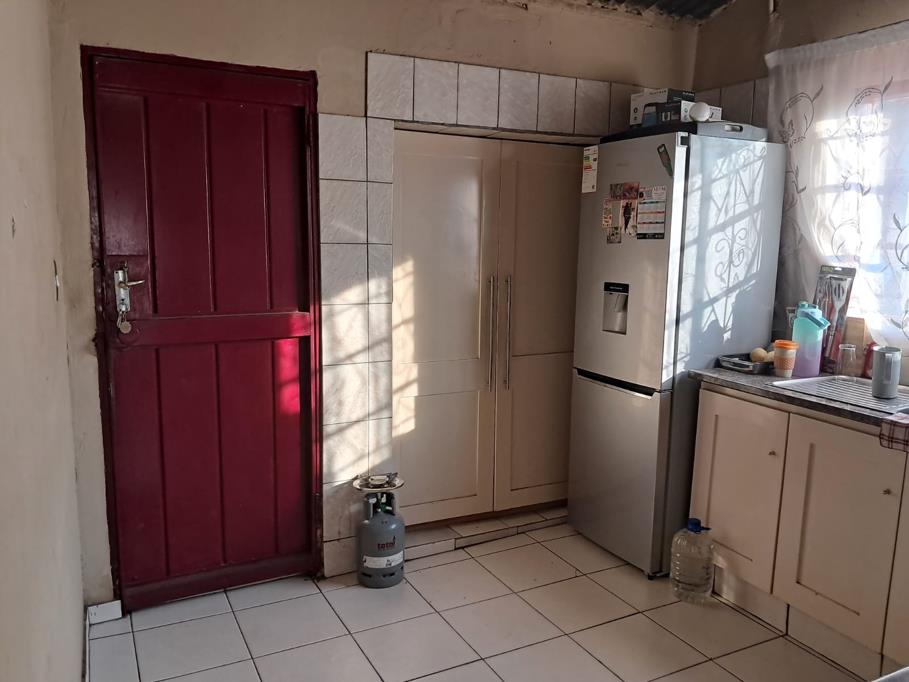 It includes a functional kitchen, a central passage connecting the rooms, two well-proportioned bedrooms, and a dedicated bathroom.