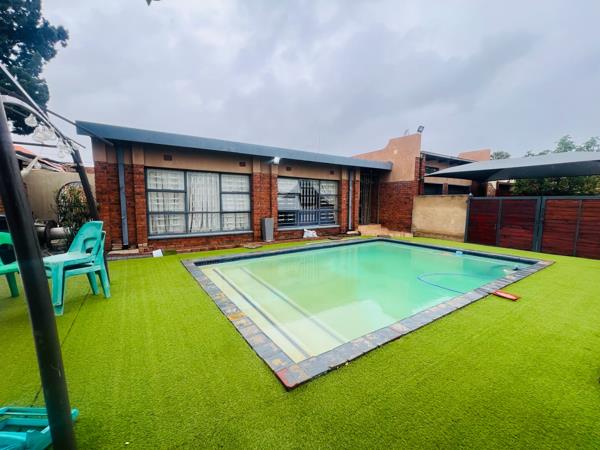 A burb in the township 3 Bedroom Classic house in Mabopane Block U. With open Plan Lounge, Dining, Sitting area and Kitchen. Property has a double garage, one drive through and an extra room and toilet at the back. Has a beautiful sparkling pool at the front with built in Braai - a CLASSIC GEM.