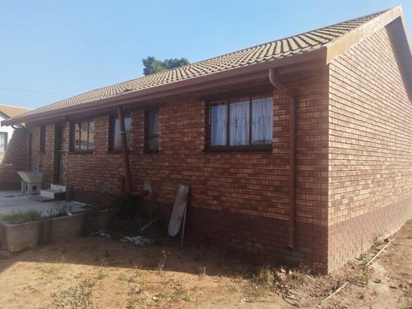 A 3 bedroom house for sale in Soshanguve Block DD. It has a kitchen, dining room, living room and bathroom. It is secured with wall fence and strong gate. It is facebrick finished and the yard paved. It is Priced at R750K.