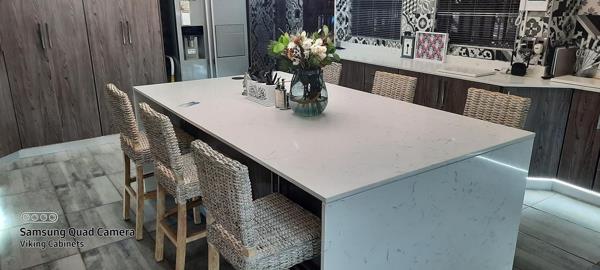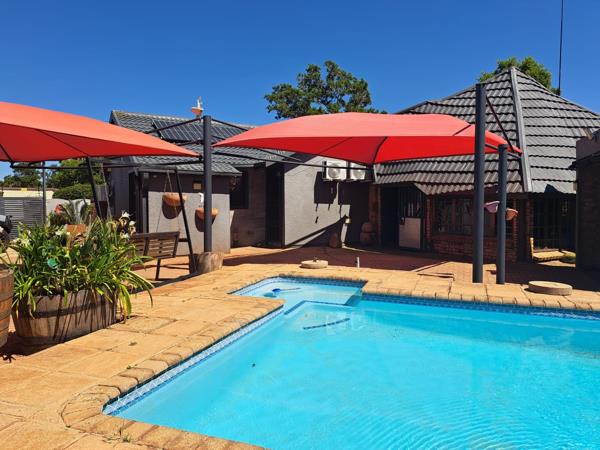 Outside, enjoy a refreshing pool and a lapa, perfect for outdoor gatherings in the well-kept garden. The property provides extensive parking with four garages and additional space for six vehicles, plus a valuable flatlet for versatile living or potential income. Lots of storage space available, and loads of cupboards. Security is prioritized with electric fencing, an alarm system, CCTV, and burglar bars. For uninterrupted living, the home includes a battery inverter and solar panels for reliable power backup and fibre connectivity. Pets are welcome. Water tanks installed. This Oberholzer home offers convenient access to local amenities in Carletonville, South Africa.