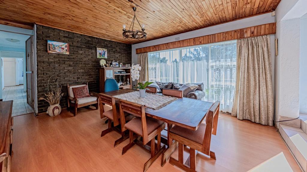 This charming gem offers a spacious open plan dining room with laminated floors, tiled lounge and family room. Lovely functional kitchen with lots of built-in cupboards, breakfast area and separate laundry & scullery area. 4 Tiled bedrooms with generous built-in cupboards and 2 neat bathrooms (main en-suite). Outside boma and braai area with spacious garden and pool (needs tlc). Domestic room, 2 garages with motorized roll-up doors and extra secure parking.