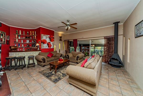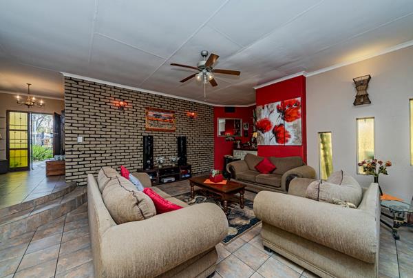 Large, desirable home for a large family, offering a lovely entrance leading to an open plan lounge and built-in-bar area with fireplace. Dining room, sunroom and lounge overlooking the beautiful garden. Gorgeous, wooden kitchen with separate laundry area. Additional room that can be used as a study, work-from-home office or bedroom. 4 Spacious, carpeted bedrooms, 2 bathrooms (main en-suite) and a separate loo.