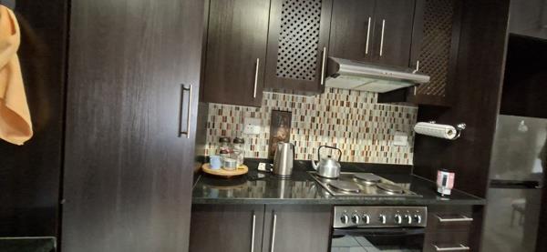 Welcome to this delightful two-bedroom, two bathroom ground-floor unit, perfectly situated in a secure complex. This home boast stylish finishes throughout, creating a modern and welcoming atmosphere. The open-plan kitchen with ample cupboard space and space for your washing machine will add to your comfort. The enclosed patio area with sliding door opening up overlooking the lush green garden, will add to your joy and peace overlooking your garden and see you four legged friend running around. This unit includes a single lock-up garage and safe parking for visitors. This pet-friendly garden perfect for a small dog or a cat.