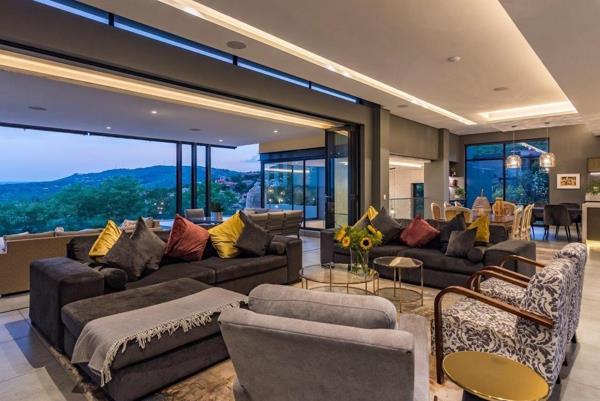 Perched at the highest point of the prestigious Featherbrooke Estate, this ultra-luxurious, state-of-the-art family home redefines modern living, and its now going on auction, offering a rare opportunity to own one of the estates most remarkable properties. Designed to capture panoramic mountainside and area views, the residence sits proudly on a 1,946m² stand and showcases exceptional architecture, energy efficiency, and cutting-edge technology. Equipped with solar panels, a full battery system, four water tanks, and an underground rainwater collection system, this home is as self-sufficient as it is sophisticated. Every element, from the architectural lighting to the floating staircase, has been crafted with precision and purpose.