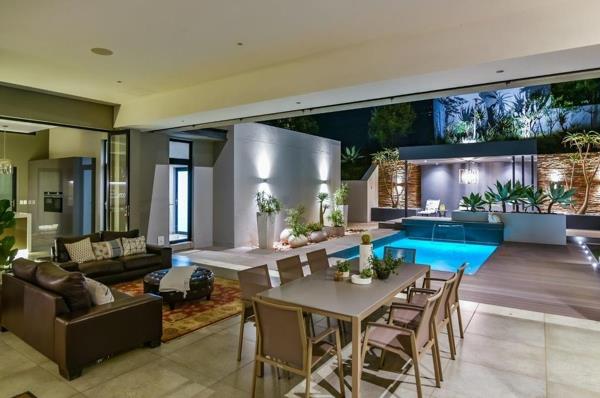 The heart of the home is an entertainers dream, expansive open-plan living areas flow seamlessly from the modern dining space to a formal lounge with a fireplace, automated blinds, and stack doors opening onto a covered entertainment and braai patio with breathtaking views. The heated swimming pool, complete with a water feature and mood lighting, creates the perfect outdoor oasis. The chefs kitchen is a masterpiece of design, featuring Caesarstone countertops, built-in appliances, soft-touch cabinetry, a walk-in pantry, and a separate scullery. A walk-in cool room and workroom offer practical luxury, perfect for hobbyists, hunters, or those who love to entertain on a grand scale.