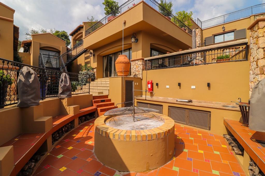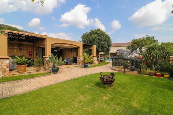 Upon arrival, the ambiance of serenity emanates from a sprawling 90-litre pond, setting the tone for this exotic 5-bedroom residence. Stylish living spaces open gracefully to a resort-style patio and entertainment areas overlooking a grand pool, a remarkable BOMA with a pizza oven, and meticulously landscaped gardens adorned with Clivias and Cycads.