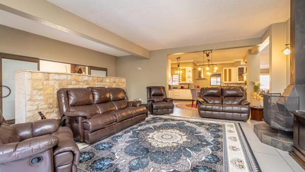 with fireplace, dining room, separate entertainment area with a heated indoor pool and built-in braai