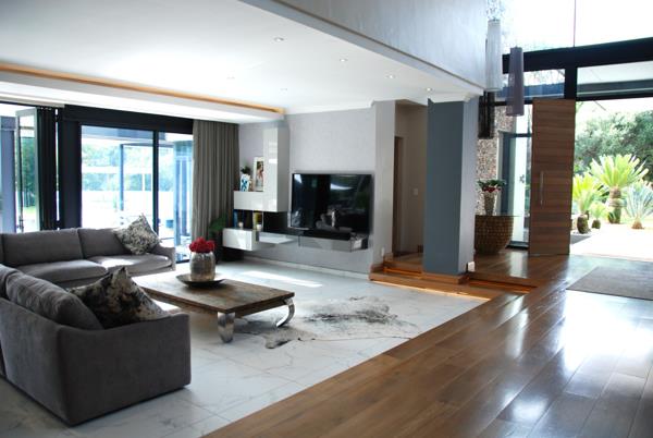 Additional luxurious features include central air-cooling, a generator, a 20,000-liter water tank, and a borehole for sustainability and convenience. The home also boasts automated blinds, double-glazed windows, a comprehensive camera system, and an irrigation system. All curtains, cycads, and more will remain, adding a touch of beauty and practicality to the property.