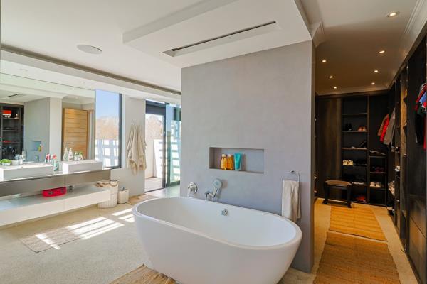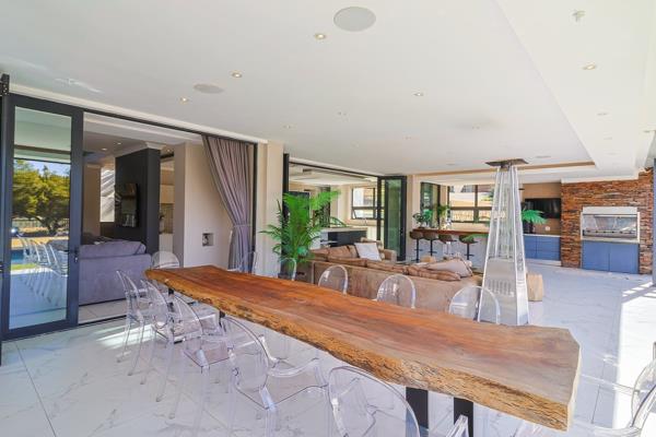 The home boasts expansive living spaces, a stunning open-plan kitchen with a scullery, and an elegant entertainment area featuring a built-in bar and braai. A separate recreation room further enhances the ease of hosting and enjoying gatherings with friends and family. The four generously-sized en-suite bedrooms include a particularly impressive main bedroom, complete with a modern bathroom and spectacular sunset views. Equipped with a self-sufficient borehole and a three-phase generator, this home is designed for off-the-grid living. Double-glazed windows, a central cooling system, and a central vacuum system ensure comfort and efficiency. The property also features seven garages and a stunning separate office with its own entrance, ideal for remote work or business needs.