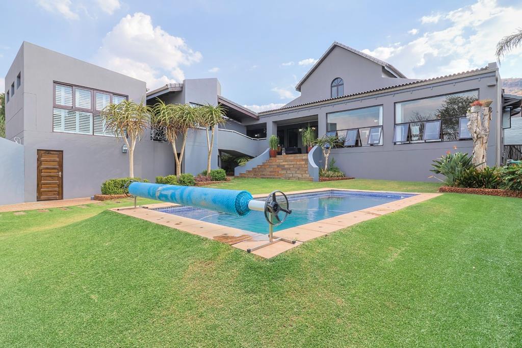 Step outside to a large veranda with breathtaking views with stack away American Shutters, ideal for entertaining and relaxation. The veranda leads to a separate braai and TV room for cozy evenings.