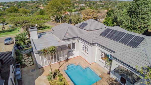 Perfect 4-Bedroom Single-Storey Home Overlooking Greenbelt! This beautiful home combines comfort, space, and charm in a tranquil setting. Offering three spacious reception areas with an open-plan kitchen featuring granite countertops, a generous breakfast nook, and a separate scullery with space for three appliances, its designed for easy, modern living. The sunny enclosed patio with a built-in braai overlooks a beautifully maintained, established garden with a sparkling solar-heated swimming pool, perfect for relaxed entertaining. The home offers three well-sized bedrooms plus a separate outside en-suite guest suite with a kitchenette, ideal for guests, teens, or extended family.