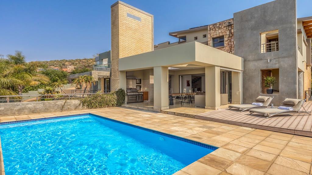 A Modern Multi-Level Haven with Every Indulgence! This spacious and immaculate multi-level, architecturally designed modern home offers a lifestyle of luxury in the secure and sought-after Featherbrooke Estate. A great combination of plaster, concrete, and face-brick design creates a striking exterior with timeless appeal. Perfectly positioned, the property is filled with natural light and boasts expansive living areas that flow effortlessly onto a stylish patio ~ an entertainers dream, with breathtaking views and a sparkling swimming pool.